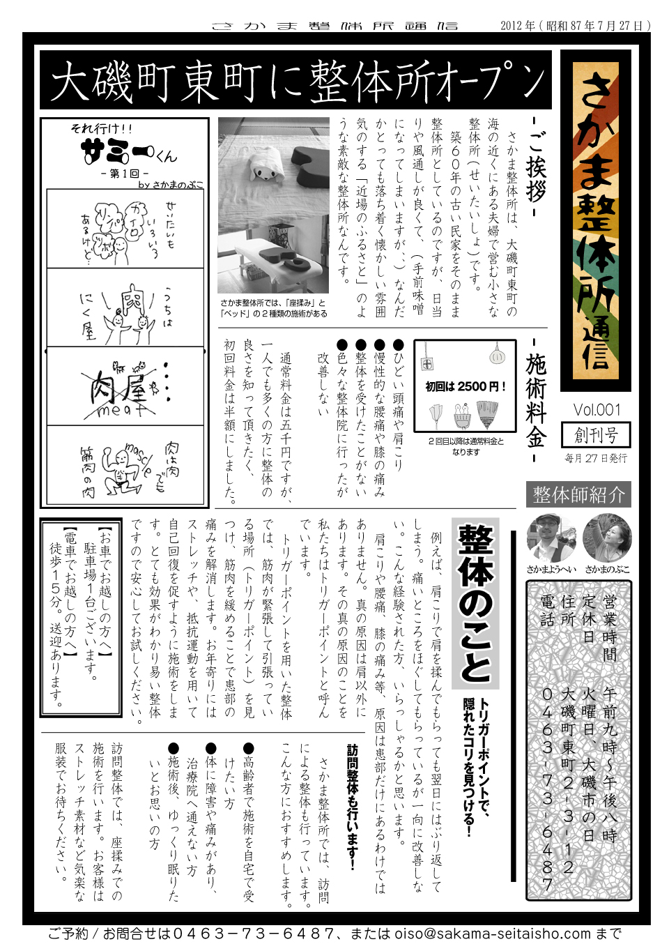 さかま整体所は、神奈川県大磯の海のそばにある小さな整体所です。